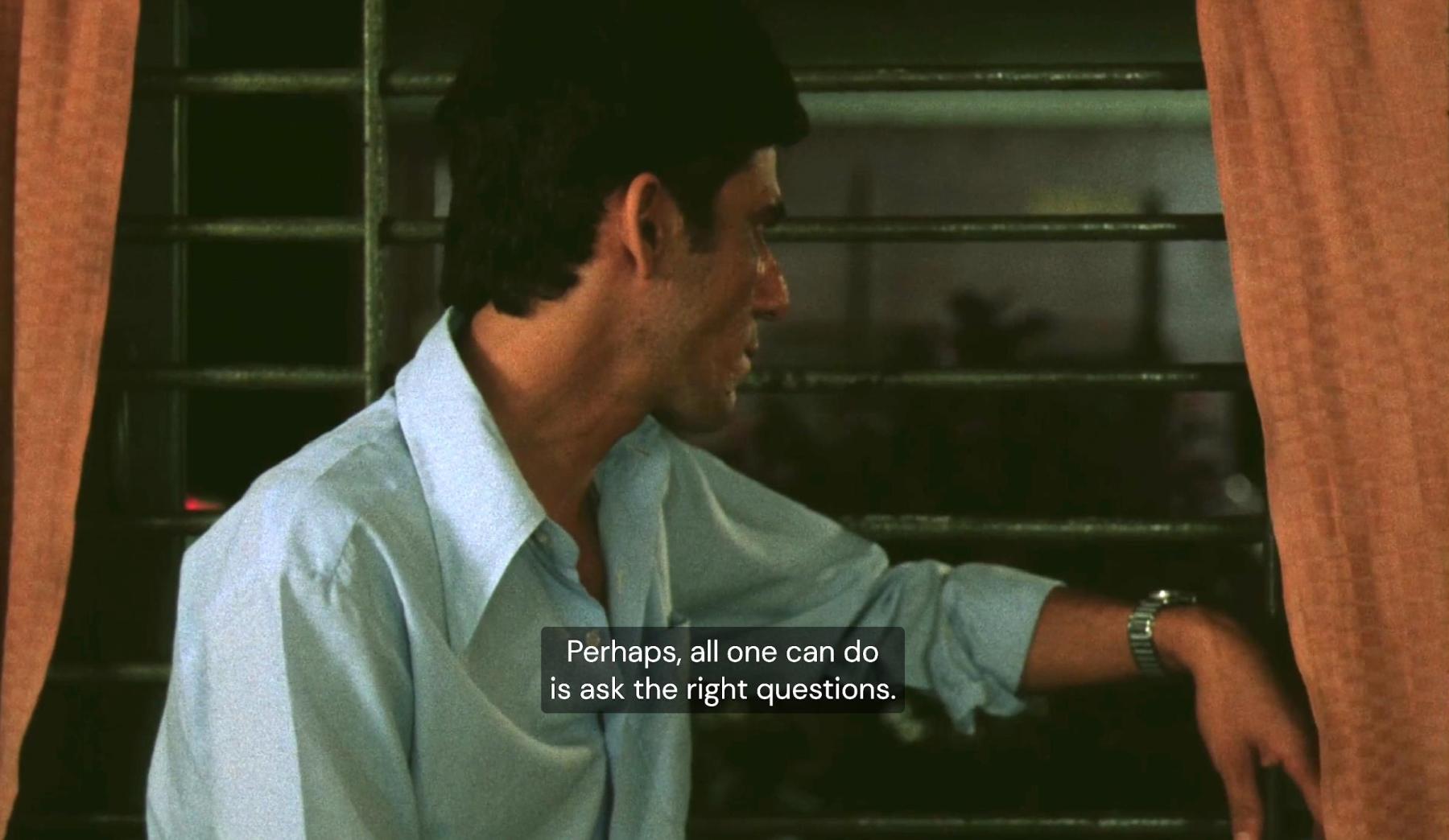 Nothing drives this point home more forcefully than Arvind’s final conversation with Rajan, who seems to acknowledge this estrangement with oneself in what can perhaps be seen as the film’s most didactic moment: "Perhaps, all one can do is ask the right questions."