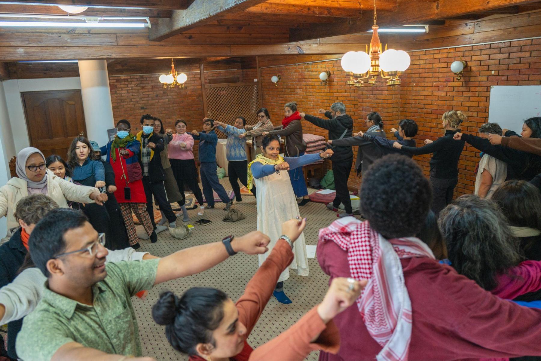 Putri Permata Sari: When I was invited to the Assembly, I did not know what to expect because it was my first time being invited to this kind of event where cultural practitioners, artists and others come together. I had spoken to NayanTara before coming to Kathmandu and she explained how the Assembly was imagined and the kinds of questions that they wanted to ask us as participants. As part of the AC Zine Club, we had planned a workshop at PhotoKTM around the zine The Tending the Soil by Ricardo Levins Morales, where he uses this metaphor to talk about how to strategise and organise. Through our work at the AC Zine Club, we try to relate these lessons to our own movements in our respective homes—Yogyakarta, Nairobi, Kampala and Mumbai. And we tried to connect our struggles together and talk about it through the zine. As I entered into the Assembly, I was wondering about others' experiences around how they organise their work and practice with their own community and in their own country because every method is very situation-based and there is no one right way to organise ourselves.