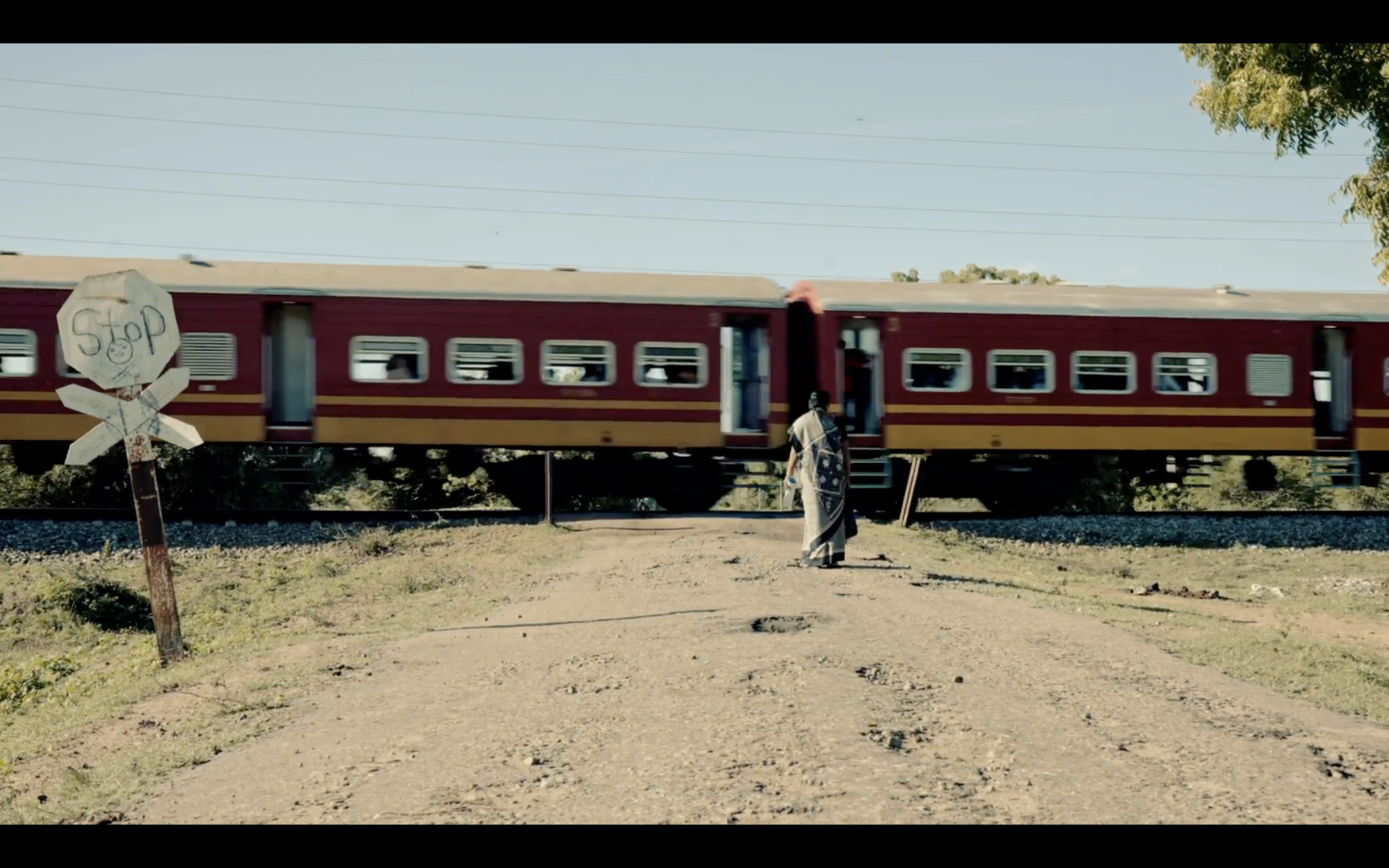 Balasri’s film belongs to the surge in conversations about intergenerational trauma caused by the war in Sri Lanka, especially in the Tamil-dominated areas of the North and East. As Nalan discovers an old anklet of his mother’s at his family home (which he soon plans to sell), his uncle tells him to leave it in the sand and not take it home as a memento. Some things must remain as they are: to be buried in spite of being “undead” in one’s mind. This analogy runs throughout the film and reminds us of the atrocities that occurred during the war in Sri Lanka, causing many to lead lives of desperation and hope after their loved ones were killed or forced to disappear. The mother waits in silence for the train in the beginning, middle, and end of Sagavaram. In the beginning, she is adamant about her husband’s return; in the middle, she continues to hope for the same but considers the future of her son as the legal technicality of obtaining a death certificate for her husband holds him back; in the end, she reaches a conclusion of silent protest as she goes in the opposite direction of the railway tracks towards a demonstration urging the government not to declare those disappeared as dead. Nalan, on the other hand, tries to remain “practical.” In spite of his knowledge about the demonstration, he walks in his own direction—upon getting the death certificate, it is presumed that he shall sell the family land and move abroad, carrying only his memories.