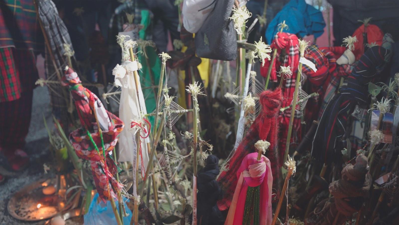 Mekh Limbu (ML): “Chotlung” in the title is related to the grandmother’s spirit that is being invoked throughout the work. Yuma is the grandmother’s spirit of this particular part of the eastern Himalayas and often the sacred sites and rites that are associated with her are described using this word. “Chotlung” is also used in reference to rituals in which both ancestral spirits and maternal figures are remembered, and during these rites, the act of weaving is often ritually invoked.