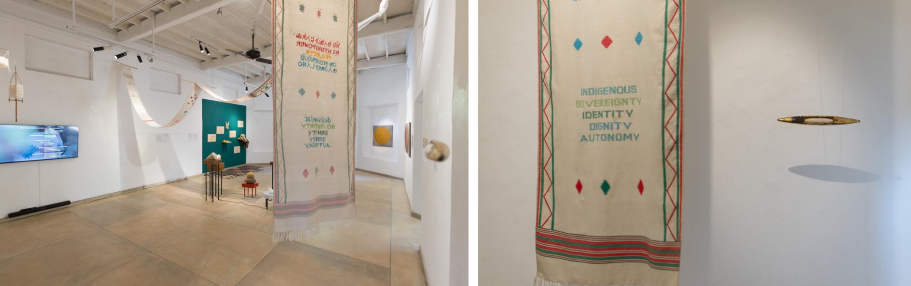 RS: In your artist statement, you say that weaving is a “language of memory and revolt,” whose origin place is Mukkumlung, a sacred Yakthung site. Could you please describe the role of weaving in your work and its importance in the lives of the Limbu people?