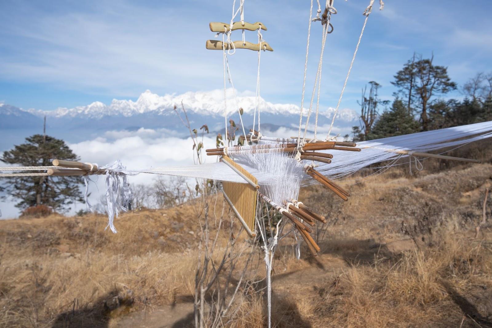 ML: Weaving is often referenced throughout Yakthung cosmology. From the point of creation to different points of civilisation coming together—weaving is referenced throughout these stories. Certain rituals even require the use of thread and materials that are used for weaving, for rites significant for the community. So weaving keeps appearing not only as an act but also as a metaphor for the continuation of the struggle and for the relationship with land that the Yakthung community has.