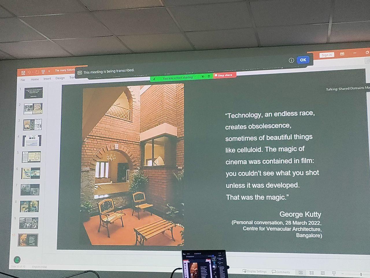 From Navdeep Sharma's presentation, "A Useful Device: The Many Histories of the 16mm Projector in Post-Independence India" (Photograph by author.)