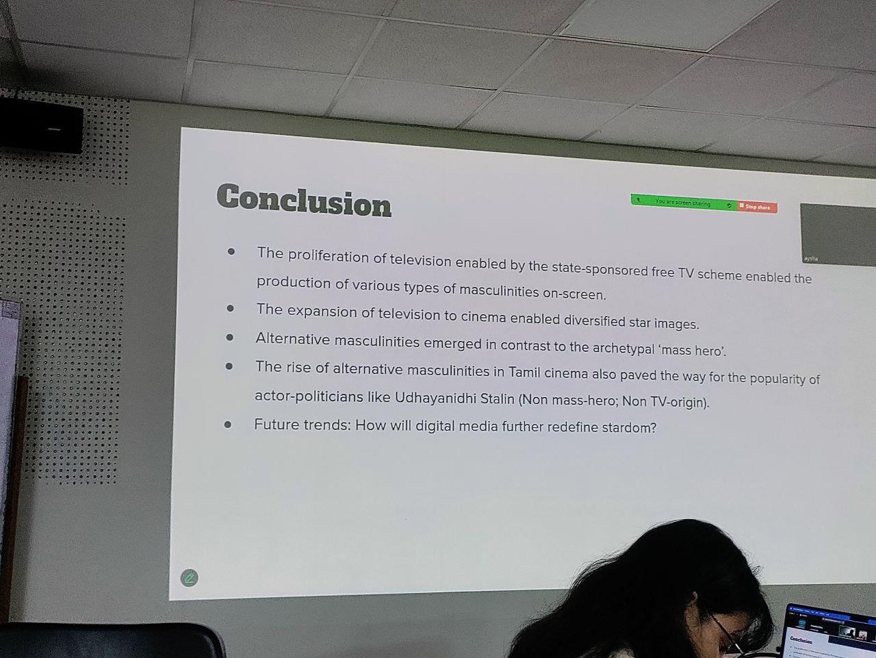 From Mohamed Ilyas R.’s presentation “Mediated Masculinities: Television Culture and the Transformation of Star Images in Tamil Cinema” (Photograph by author).