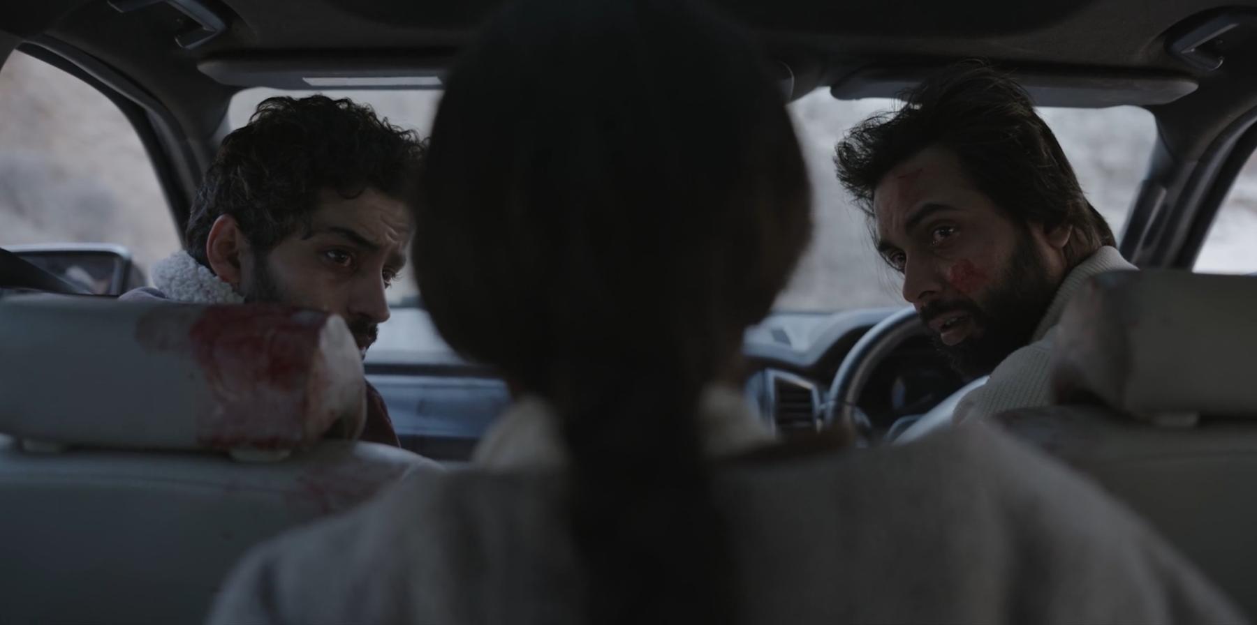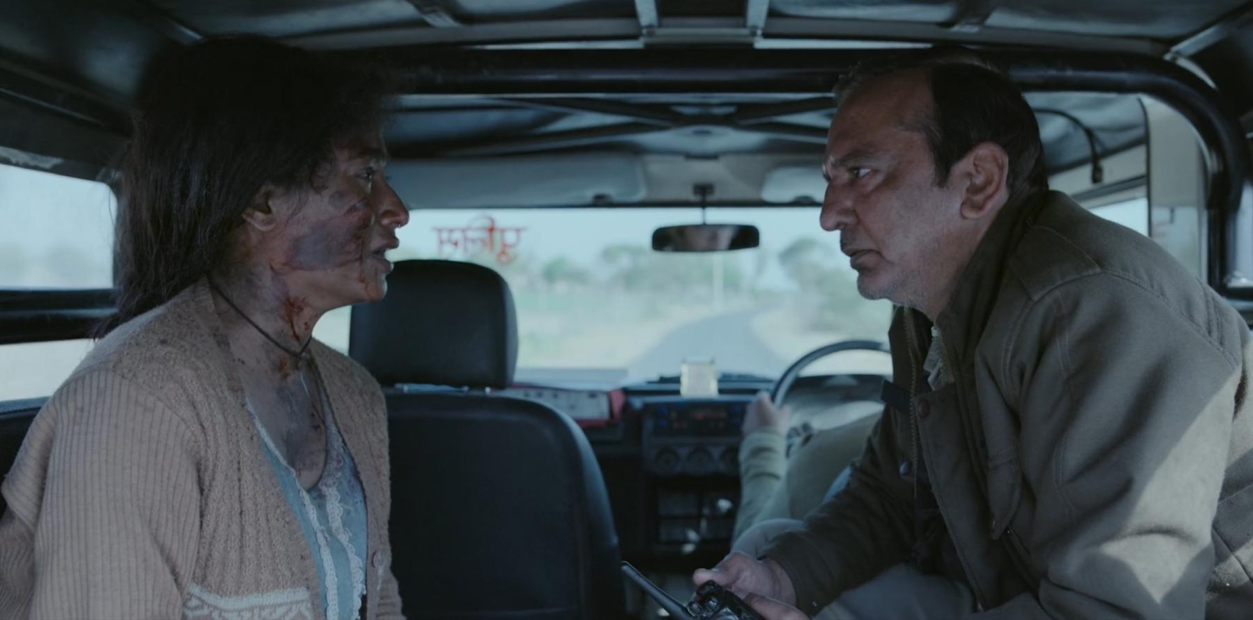 Gautam, being a Delhi businessman, has a completely indifferent take on the theft of the baby. He also accuses Jhumpa of lying, primarily due to her social identity, and keeps warning Raman to not take her too seriously. However, Raman feels a burgeoning obligation to act about the situation, even at the cost of skipping his mother’s wedding ceremony. During an argument between the brothers, we find out about Raman’s loss of his partner and general disillusionment with money as a solution to problems. He reminds Gautam, “Jeb se sochna band kar! (Stop thinking from your pocket!)" The moral conflict between the two plays on the archetypal narrative tool of two brothers and their opposing moralities. However, Raman’s choice of helping Jhumpa brings some heinous consequences for them, as he is shot in his arm by a crowd during the car chase in barren lands, and Gautam gets beaten up by a mob and spectacularly paraded across the village after being mistaken for the culprit. The flow of misinformation by media networks and the public urge towards forms of vigilante justice continue to highlight the failure of law in controlling such eruptions. The suffocating existence of finding oneself as an alien surrounded by a mad crowd comes as a rare tragedy in the lives of Gautam and Raman, but it is something which is so normal for Jhumpa.