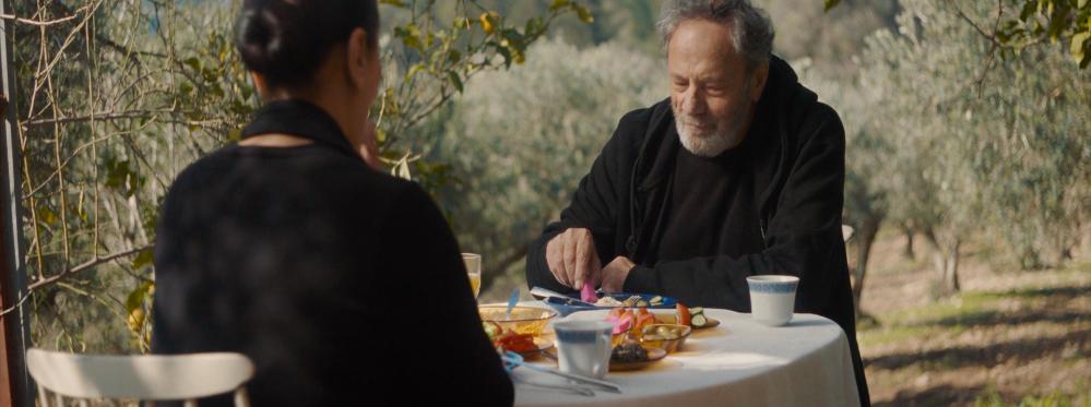 These familial contretemps, however, are not the reason that an air of quiet gloom and serene despondency hangs in the atmosphere. The gloominess is not overwhelming in its effect. It floats like dust, which, when the camera goes closer, settles in Suleiman’s ruffled hair, unkempt beard and weatherbeaten face, or in Lubna’s fatigued stare as she takes a stroll in the olive grove. Over recurring conversations, interspersed with extended periods of mute co-presence, the prevailing mood reaches a saturation point halfway through the film until a journalist, Khalil Haj (Amer Hlehel), visits them and interrupts their sequestered existence.