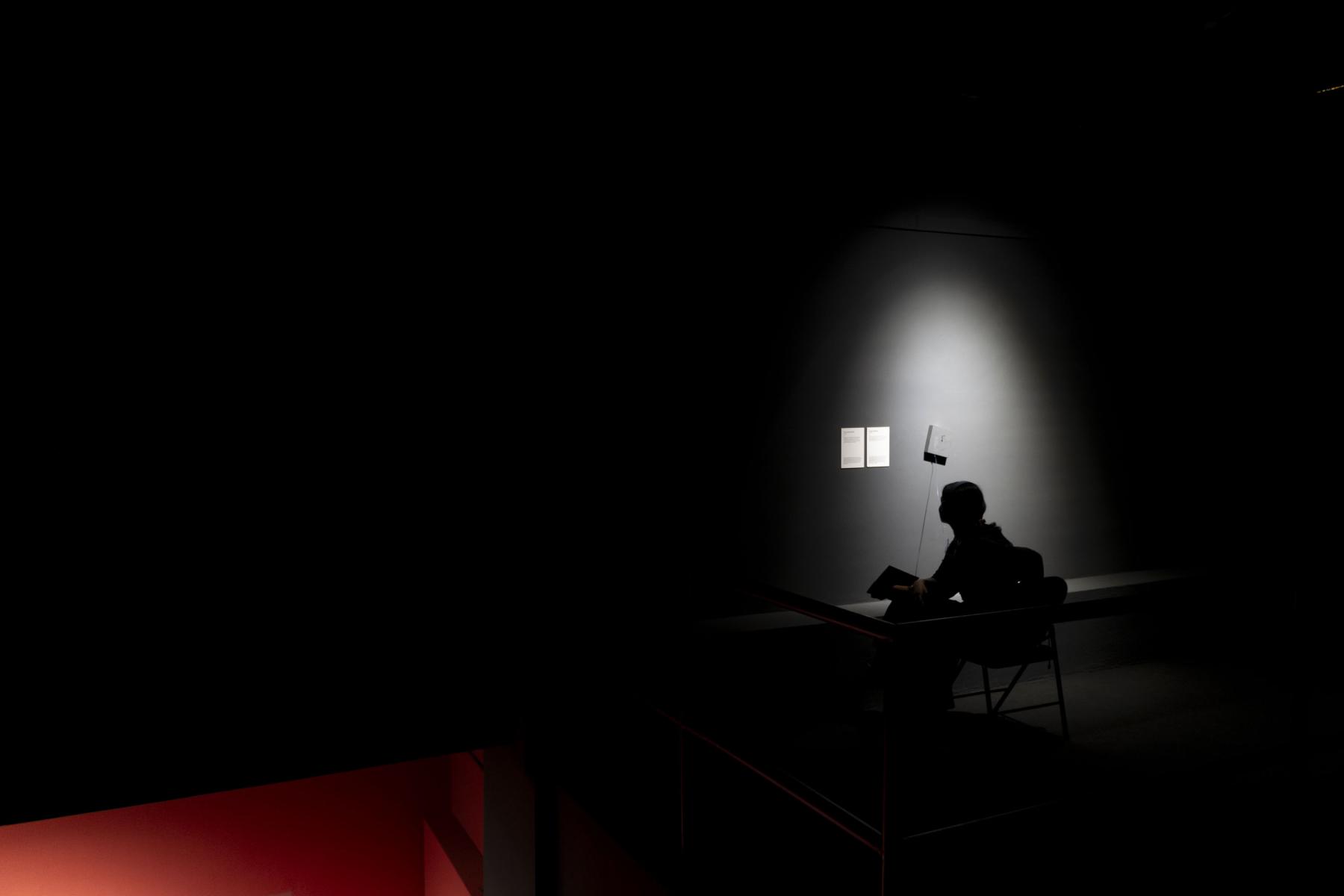 A visitor listens to Irina’s "The Mothers Selves," a sound work interpreting poems by Itisha Giri (Naniji), Ocean Vuong (Snow Theory), and Sylvia Plath (Morning Song).