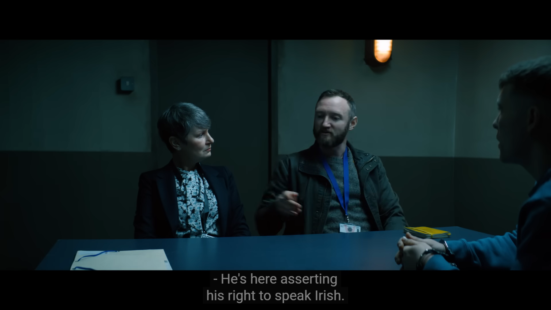 Immediately after landing in a high tempo party where Chara and his co-rapper Naoise Ó Cairealláin aka Móglaí Bap bumped lines while creating a space for Irish speakers to socialise and dance, we witness Chara being arrested. In the semi-fictionalised world of the film, this is where music teacher and Irish speaker JJ Ó Dochartaigh—who would later become their third member, DJ Próvai—enters as a translator in between the tense police interrogation where Chara refused to speak English. In reality, they had met at one of these parties. Choosing sides was what made most of Irish history, schooling and urban planning, and good boy Dochartaigh is baptised anew as bad by lying to save Chara, knowing a far worse fate awaited the young boy with Irish republican sentiments, who could not stand England. As Chara said, “We are known for our love for throwing shit at the peelers (police) no matter where in Northern Ireland you came from,” and perhaps that was Dochartaigh’s shot.